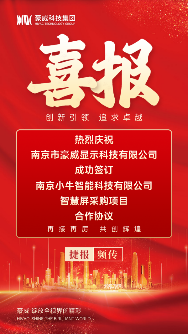 【捷报频传】南京豪威成功签订南京小牛智能科技有限公司智慧屏采购项目合作协议!
